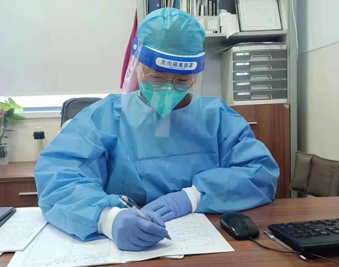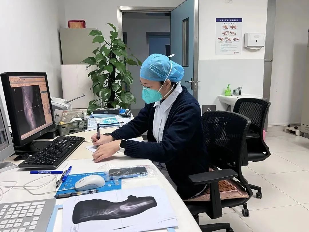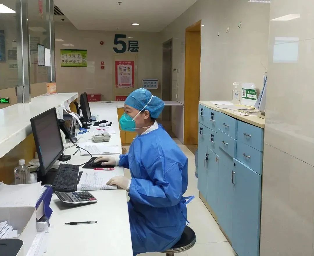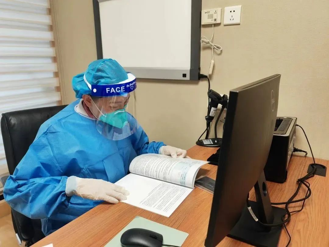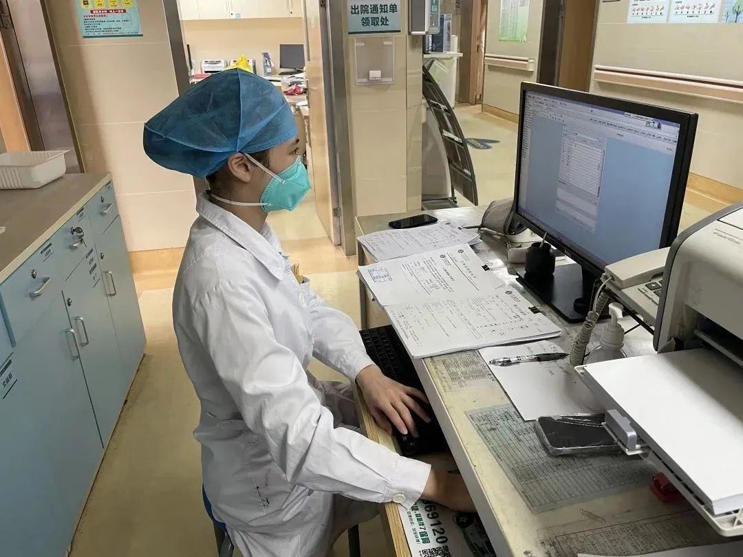 医疗队护士长、消化内镜科护士长刘亚男副主任护师在审核急诊及收费记录