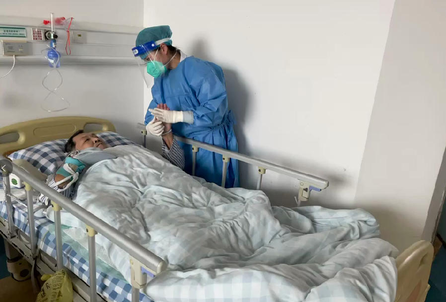 医疗队感控护士长、心血管内科护士长黄晓静主管护师为心衰病人带来暖心护理