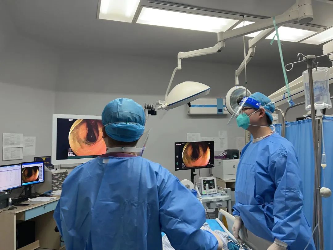 内镜外科梁信杰护士协助进行经造口肠镜检查