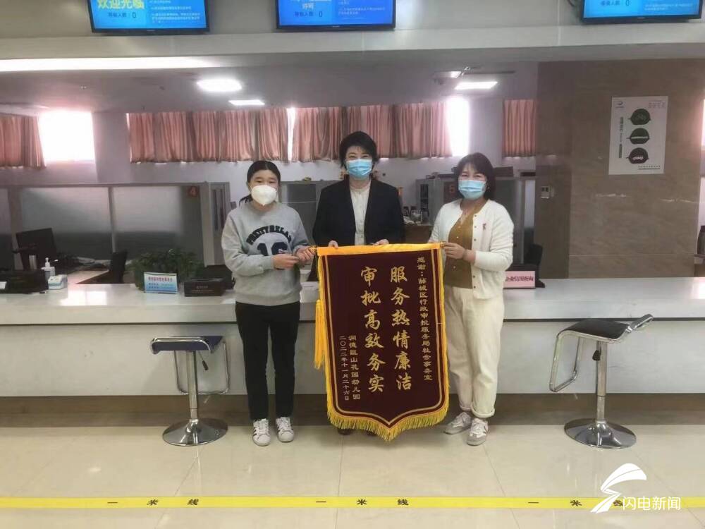 齐鲁网·闪电新闻12月16日讯 “想不到事项办理这么方便快捷,真是太感谢你们了!”近日,润德巨山花园幼儿园负责人将一面写着“服务热情廉洁,审批高效务实”的锦旗送到枣庄市薛城区行政审批服务局窗口工作人员手中。
