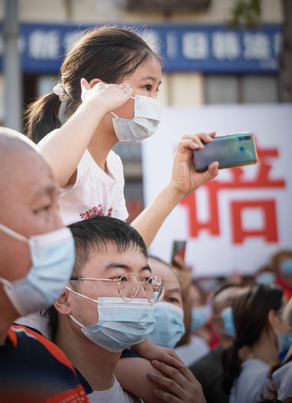 8月28日,在重庆市北碚区,一名小女孩向完成山火扑救任务后撤离的云南森林消防队车队敬礼。新华社记者 朱高祥 摄