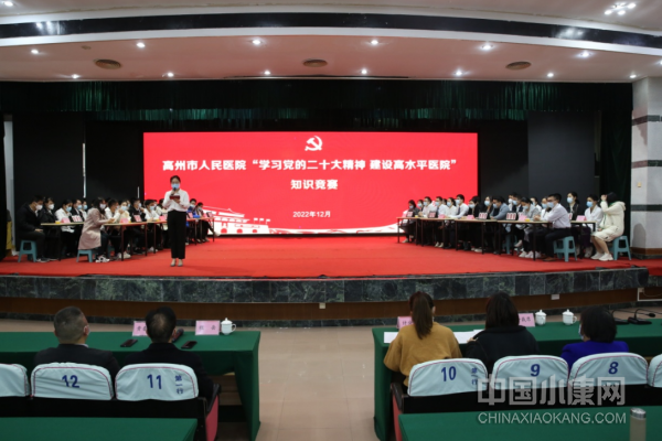 中国小康网12月16日讯 记者张玉荣 通讯员丁新林 罗小玲 为深入学习宣传贯彻党的二十大精神,引导全院党员干部把思想统一到党的二十大精神上来,把力量凝聚到高水平医院建设的各项任务上来,12月15日,广东省高州市人民医院举办“学习党的二十大精神 建设高水平医院”党建知识竞赛。