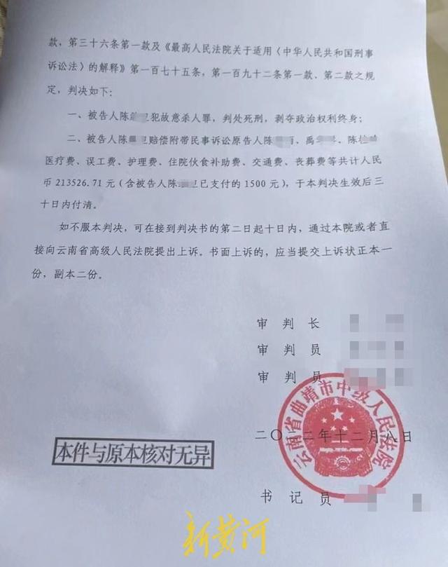 12月16日下午,陈昌雨在自己的朋友圈发出了一张判决书。判决书显示“被告人陈继卫犯故意杀人罪,判处死刑。”