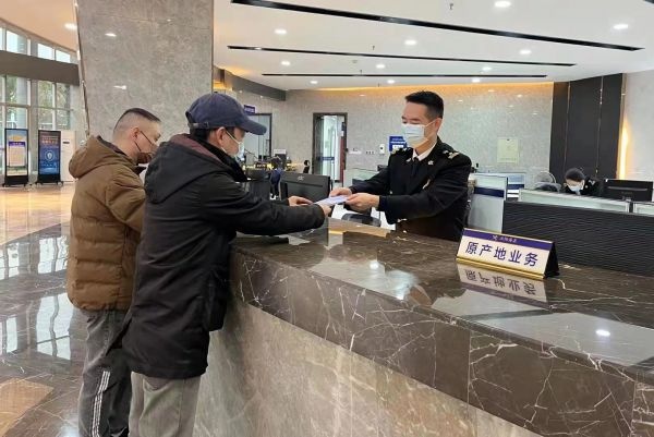 武汉海关关员为外贸企业办理原产地业务。通讯员钱永辰 摄
