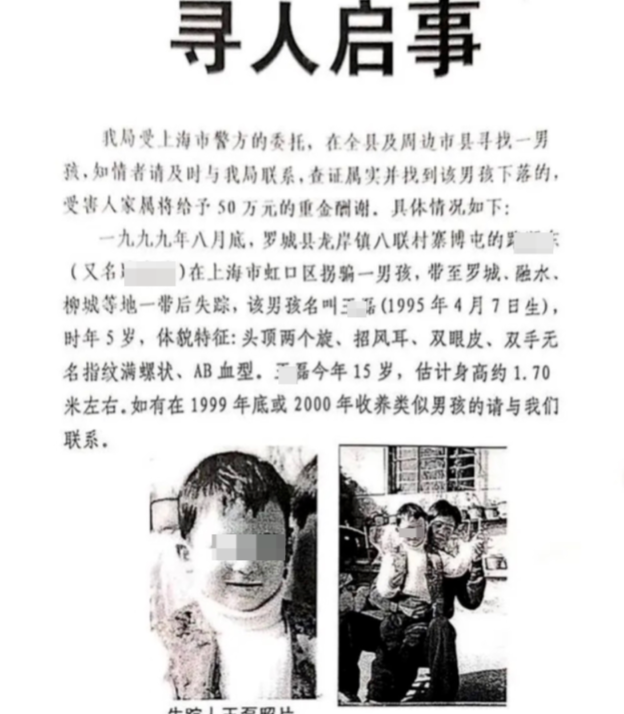 ↑当年,广西警方受上海警方委托发出的寻人启事 受访者提供
