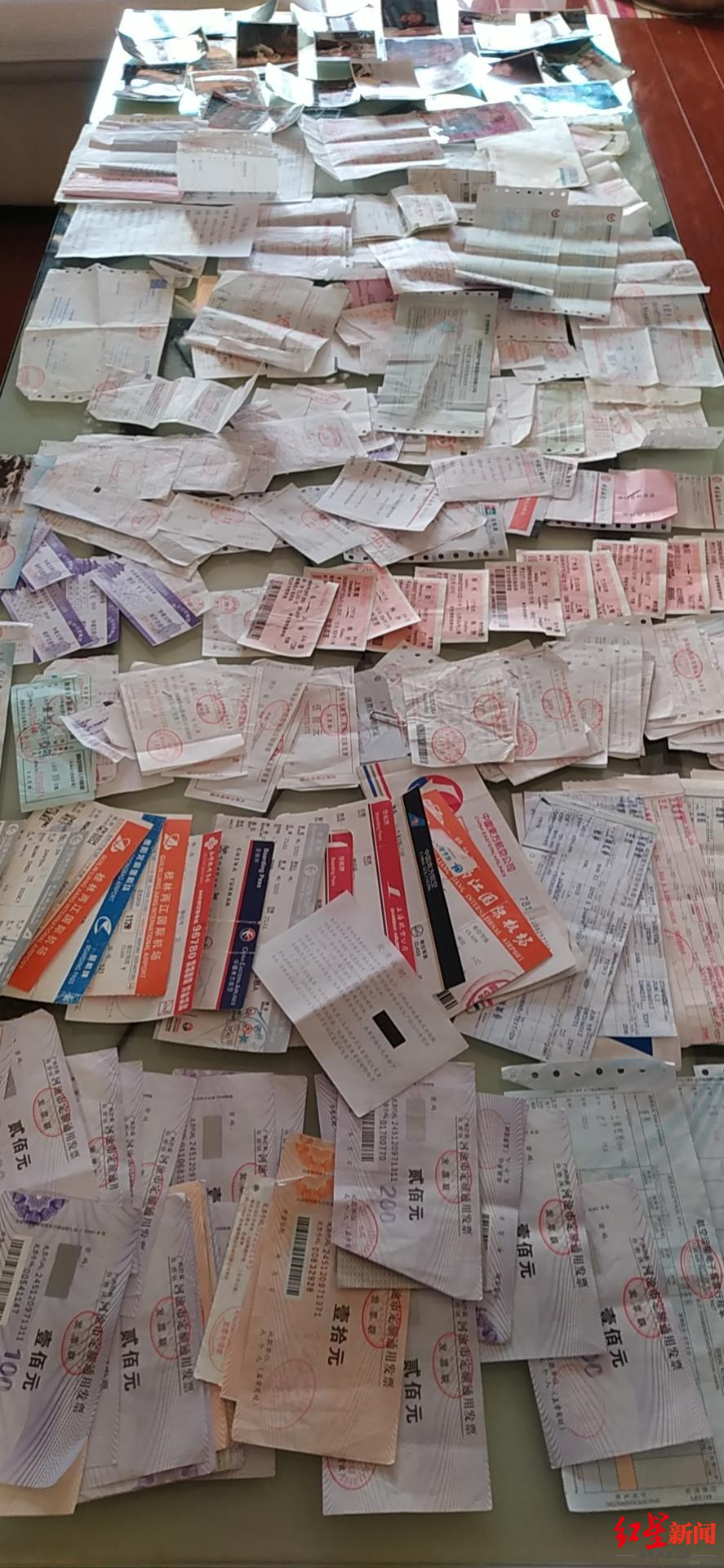 ↑唐蔚华保留的部分寻子花销票据 受访者供图