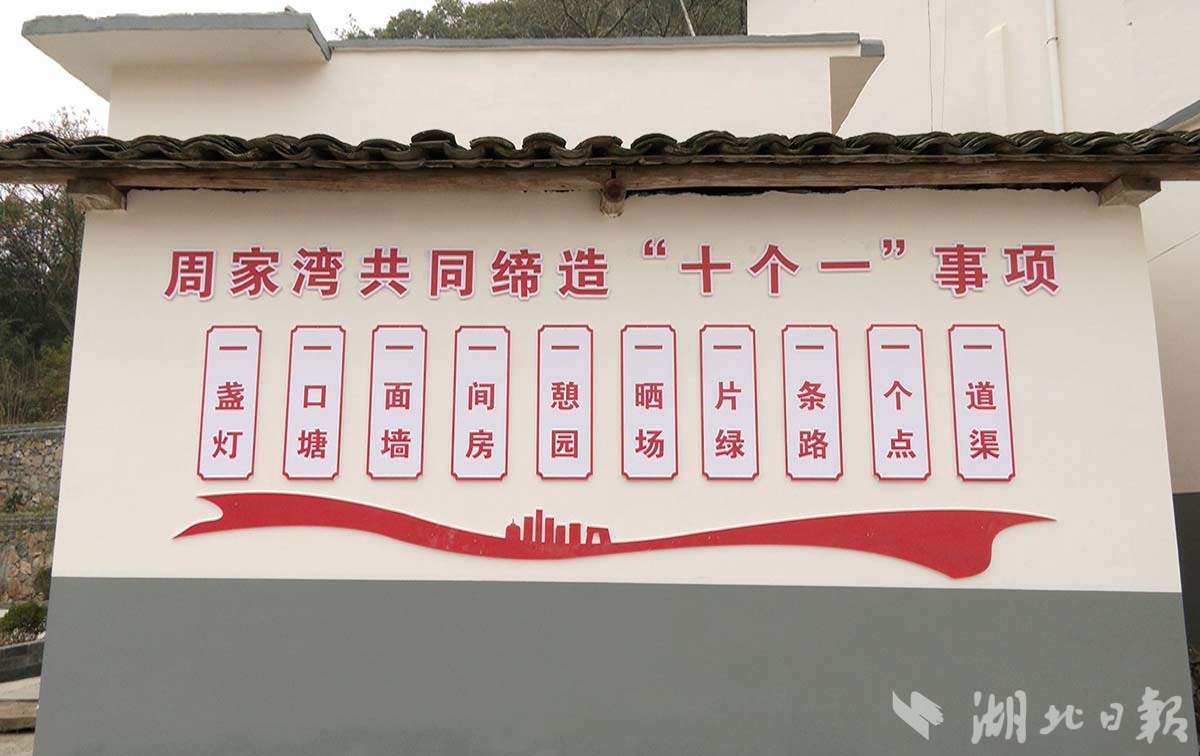 亮起一片路灯、护砌一池塘堰、打造一个憩园、拓宽硬化一条公路、整修一条沟渠、彩绘一面文化墙……周家湾的共同缔造正在按照湾子夜话确定的“十个一”方案稳步推进。村湾理事会成立了环境卫生评比队、志愿服务队、文化活动队,建立村湾评比机制,开展“身边好人”“十星级文明户”“村湾最美家庭”评比活动,设立共同缔造“红蓝榜”,对优胜者给予奖状、奖牌激励,后进者参加义务劳动,增强群众荣誉感和责任感,鼓励见贤思齐,形成良好风气。