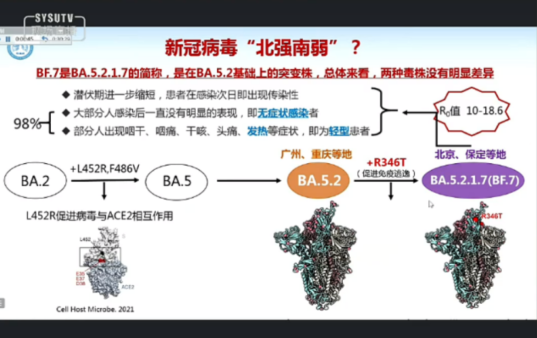 针对网上所谓的新冠病毒“北强南弱”的说法,钟南山认为,广州、重庆等地流行的毒株主要是BA.5.2,北京、保定等地主要是BF.7,BF.7是在BA.5.2基础上的突变株,总体来看,两种毒株没有明显差异。(症状的差别)可能跟气温有关,也可能跟病毒进一步逃逸有关。