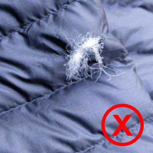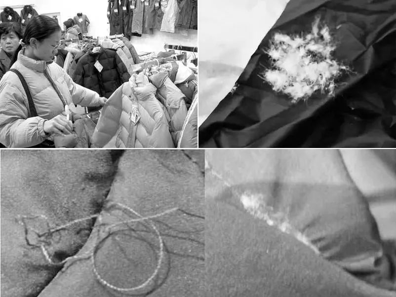 有些羽绒服经常有跑绒问题,一个个绒毛从针眼甚至布料孔跑出来。