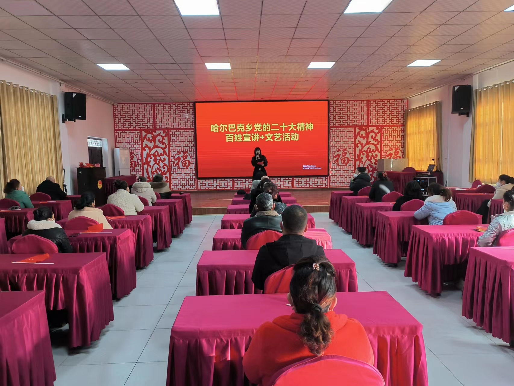 为认真学习宣传贯彻党的二十大精神,切实把全乡广大干部群众的思想和行动统一到会议精神上来,连日来,哈尔巴克乡开展学习贯彻党的二十大精神专题系列专题活动,以理论培训学习、基层宣讲、文艺汇演等方式,持续掀起学习热潮。