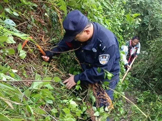 为确保平稳转移,大家沿途清理杂草、树枝、障碍,架起“人桥”,在茂密的山林中开辟了一条生命通道。