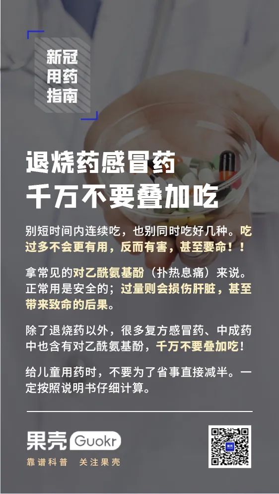 同样的道理,为了避免超量服药,千万不要感觉自己症状重就多吃几粒,也别吃了觉得没效果就频繁吃药。这样做不仅不能更快退烧止疼,还可能搞出比新冠更严重的麻烦。