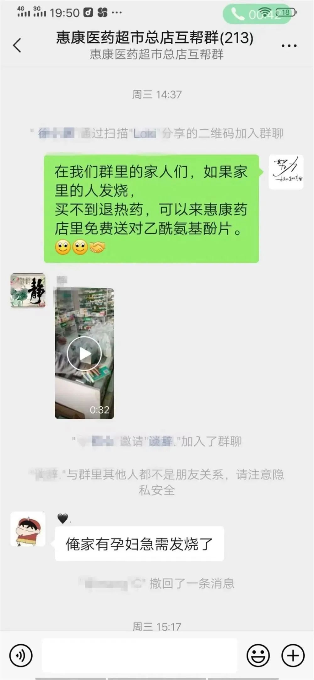 韩方印开药店一年多,在商丘市区和乡镇各开了一家。他介绍,因为疫情原因,很多药店的退烧药断货了,此前他店内有一批退烧药没卖完,所以这次就拿出来免费发给有需要的人。开始他是想免费发给朋友和药店的会员,因此就在会员群里发了通知,可消息一传十、十传百,很多市民咨询,而且好多都是急等着退烧药的病人,于是他决定,干脆向所有人免费发。15日,店里免费发了一千片,16日又发了一千片。