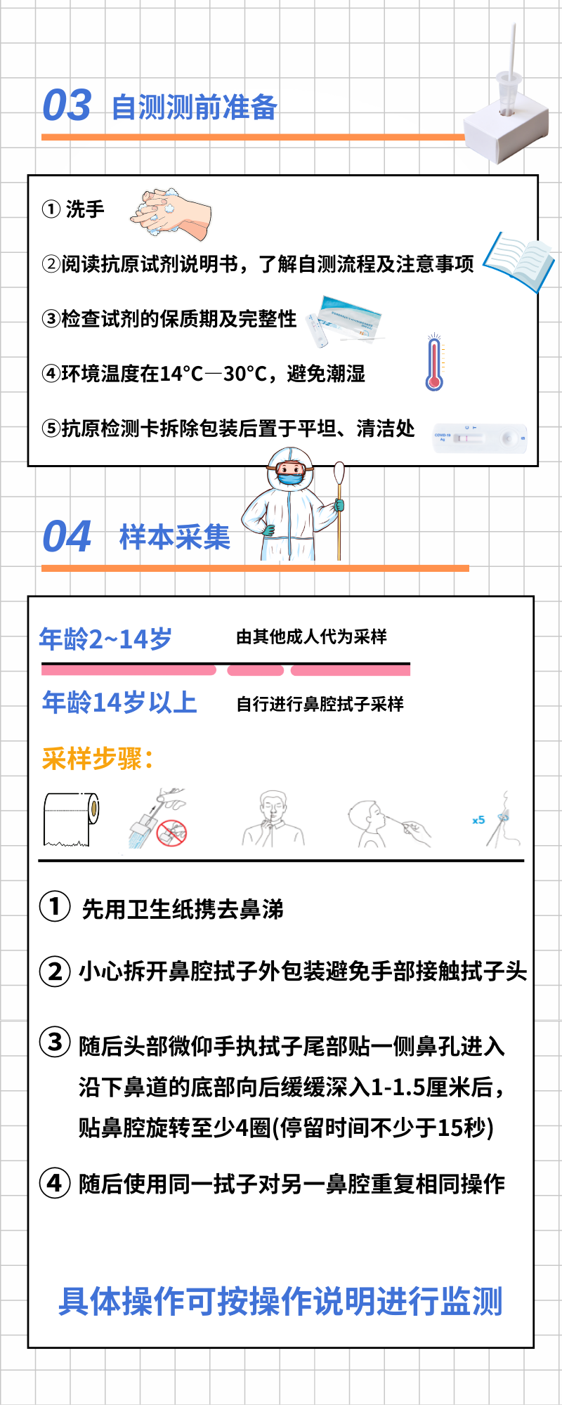 方便在家里按照说明书和操作流程即可自行检测;快捷抗原检测15-20分钟即可出结果;经济抗原检测不需要仪器设备,不需要专业人员采样,且价格便宜;低风险个人独立检测,避免了人群排队检测时交叉感染的风险。