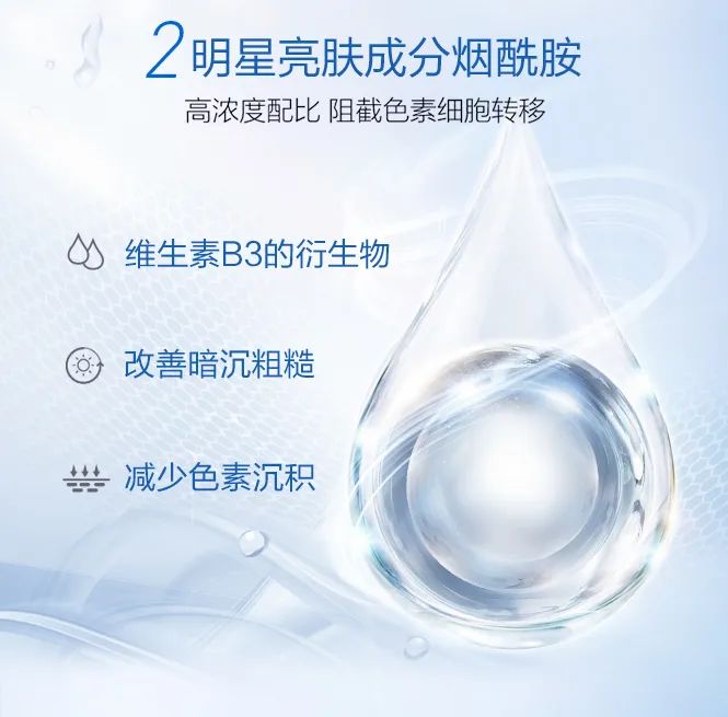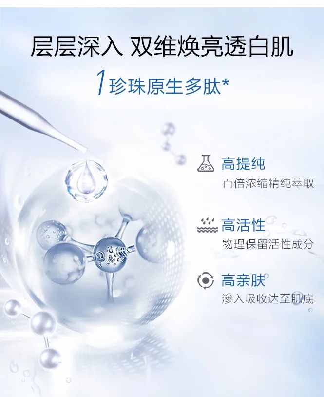珍珠多肽可以抑制黑色素的产生,大名鼎鼎的烟酰胺可以阻止黑色素细胞将黑色素运到表层,这2种明星美白成分,一阻一挡相互搭配,你懂的。