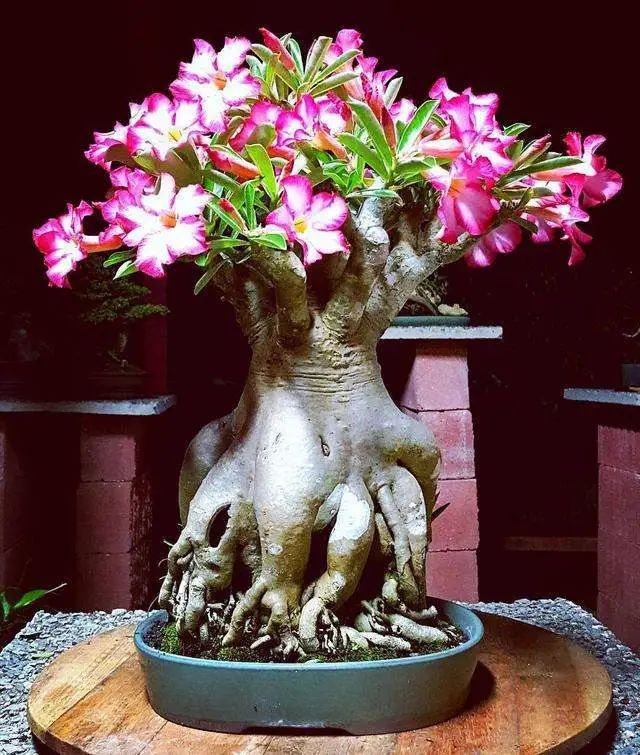 沙漠玫瑰这种植物从名字就可以判断,它属于一种沙漠植物,虽然它开花非常漂亮,但是其实它和沙漠里的仙人掌一样比较耐旱,相反它就怕积水。因为沙漠玫瑰的茎段是块状根茎,本身蓄水量就很多,不需要太多水分,如果浇水太足很容易积水烂根,所以在冬天一个月浇一次都是可以的。