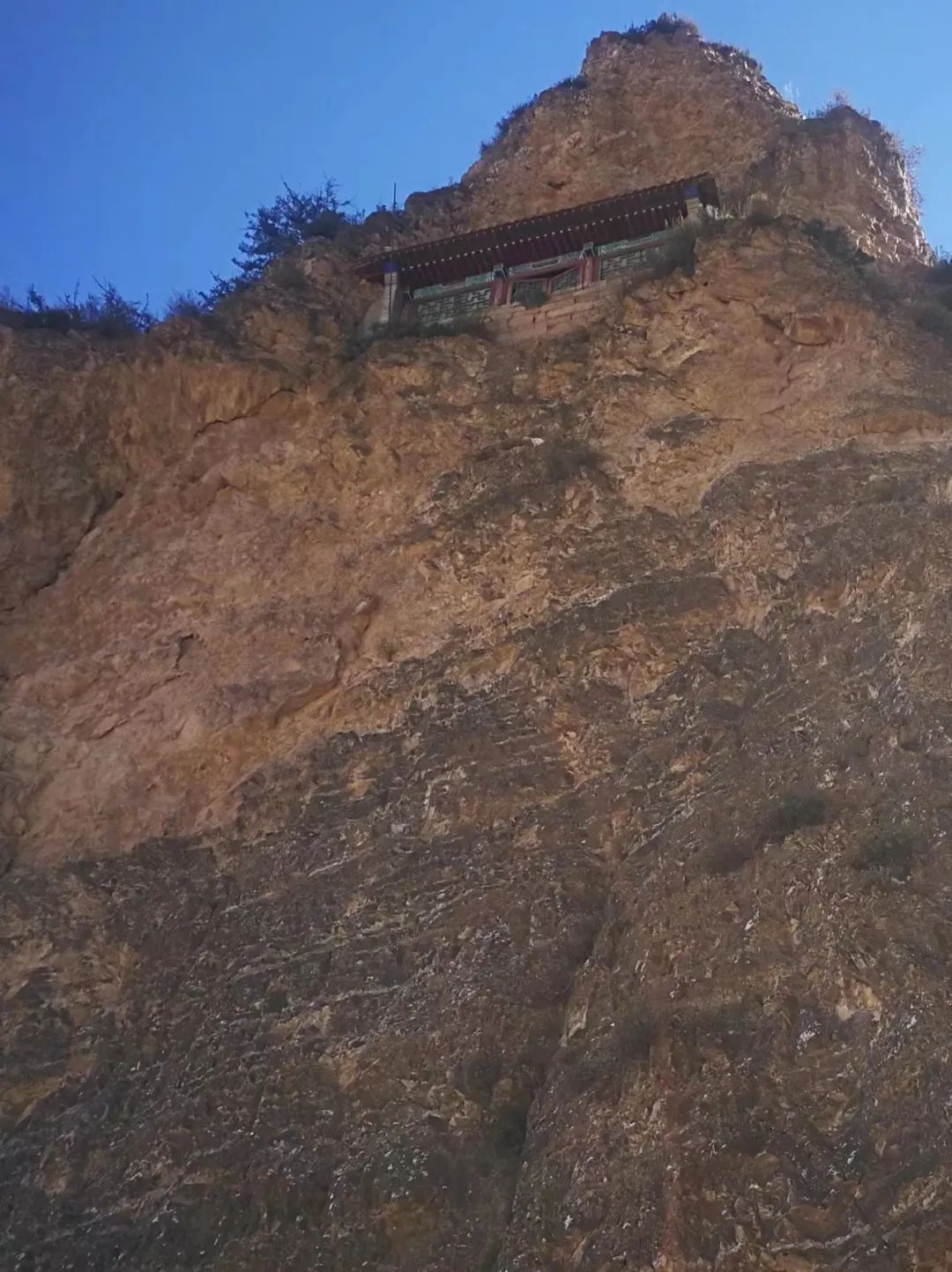 在半停半行中约莫走了半个时辰到达了心驰神往的罗汉洞,但见上载石岩、下临深谷、凿石落基、傍岩起屋,俨然一座空中楼阁, 试问峭壁何人嵌梵宫,参差错落半崖中?