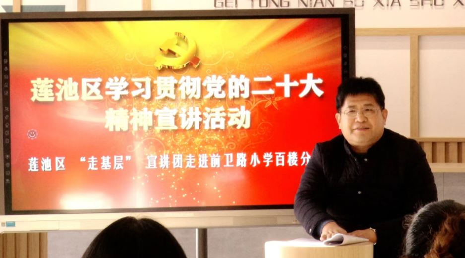 12月17日,保定市莲池区教育和体育局学习贯彻党的二十大精神“走基层”宣讲团走进保定市莲池区前卫路小学百楼分校进行宣讲,局党组和局班子成员与学校教职工开展了深入的座谈。