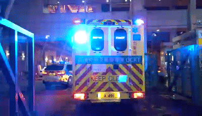 香港警车护送港方救护车离开海关,向香港儿童医院奔驰。