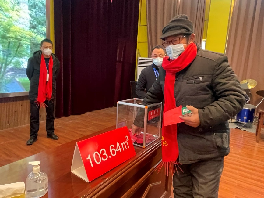 在选房现场,镇工作人员本着科学选房、公平公正、阳光操作的原则,用心尽心对选房注意点进行讲解,村民们根据抽签选房实施规则,分不同户型列队,按顺序抽取座位号和选房号,最后按选房号引导至对应的选房室选房。根据农户选定房屋号和储藏室号进行销号、登记、确认、复核,后开具上房证,工作组及农户签字确认后方可离场。整个过程严谨透明,阳光操作,确保安置群众选到满意新房。