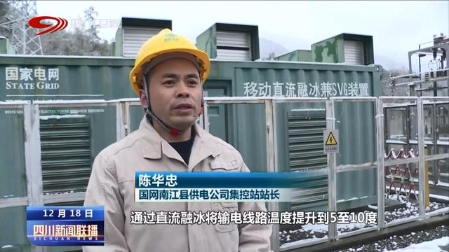 国网南江县供电公司集控站站长 陈华忠:通过直流融冰将输电线路温度提升到5~10度,使线路的覆冰掉落,满足线路的安全运行条件。