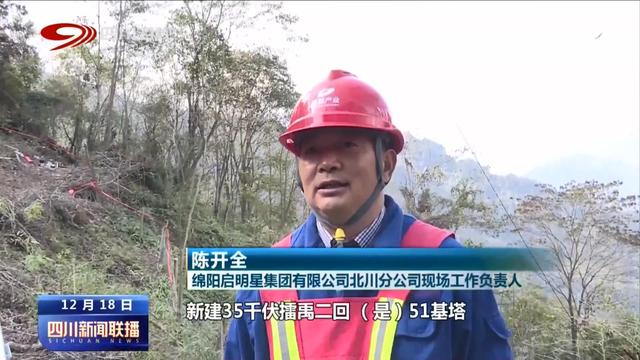 绵阳启明星集团有限公司北川分公司现场工作负责人 陈开全:35千伏擂禹二回,是51基塔,现在我们是已经(建设)组立13基,预计在十二月底完成基塔的组立。
