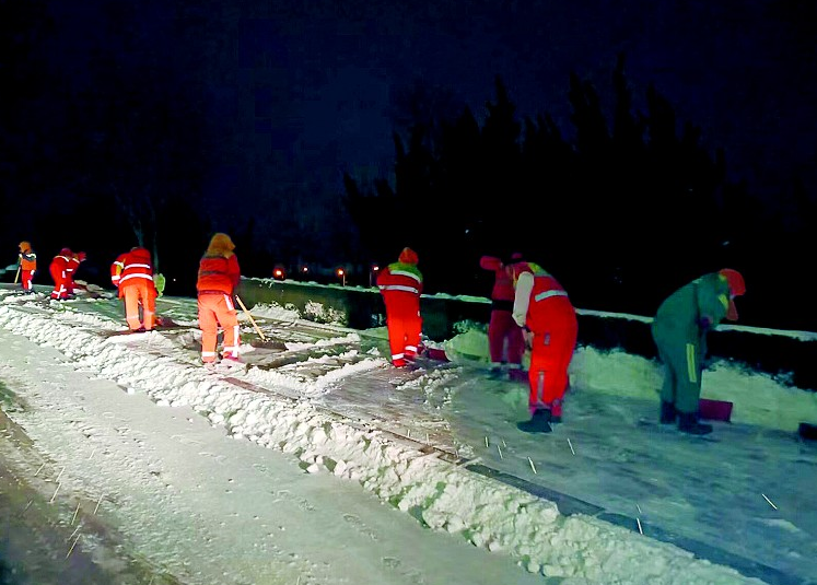 除雪工作从16日16时开始,旅顺口区市政公用事业服务中心按照“全覆盖、无死角、保畅通”的原则,针对辖区内主次干道,精准划分区域,科学分配人员、除雪装备、除雪车辆、融雪剂等,采用人机结合的方式,第一时间在辖区主干道开展除雪铲冰工作,保障了学校、商场、超市、交通枢纽等地段的道路畅通。
