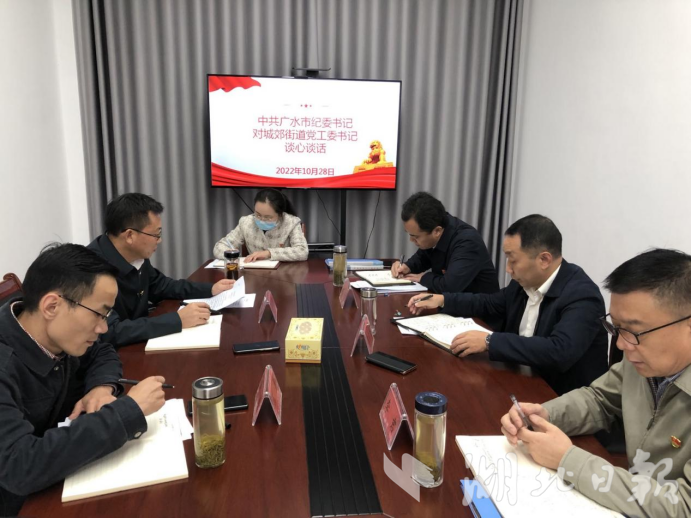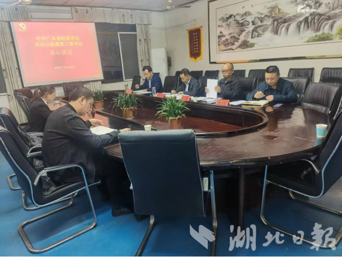 湖北日报客户端讯(通讯员李端 孙昆昆)“要进一步提高政治站位,严守政治纪律、政治规矩,认真进行政治生态研判,切实履行全面从严治党主体责任,压实‘一岗双责’”。近日,广水市纪委监委主要负责人在与某单位“一把手”谈话中,直击问题,提出要求,向“一把手”传导压力并压实责任。