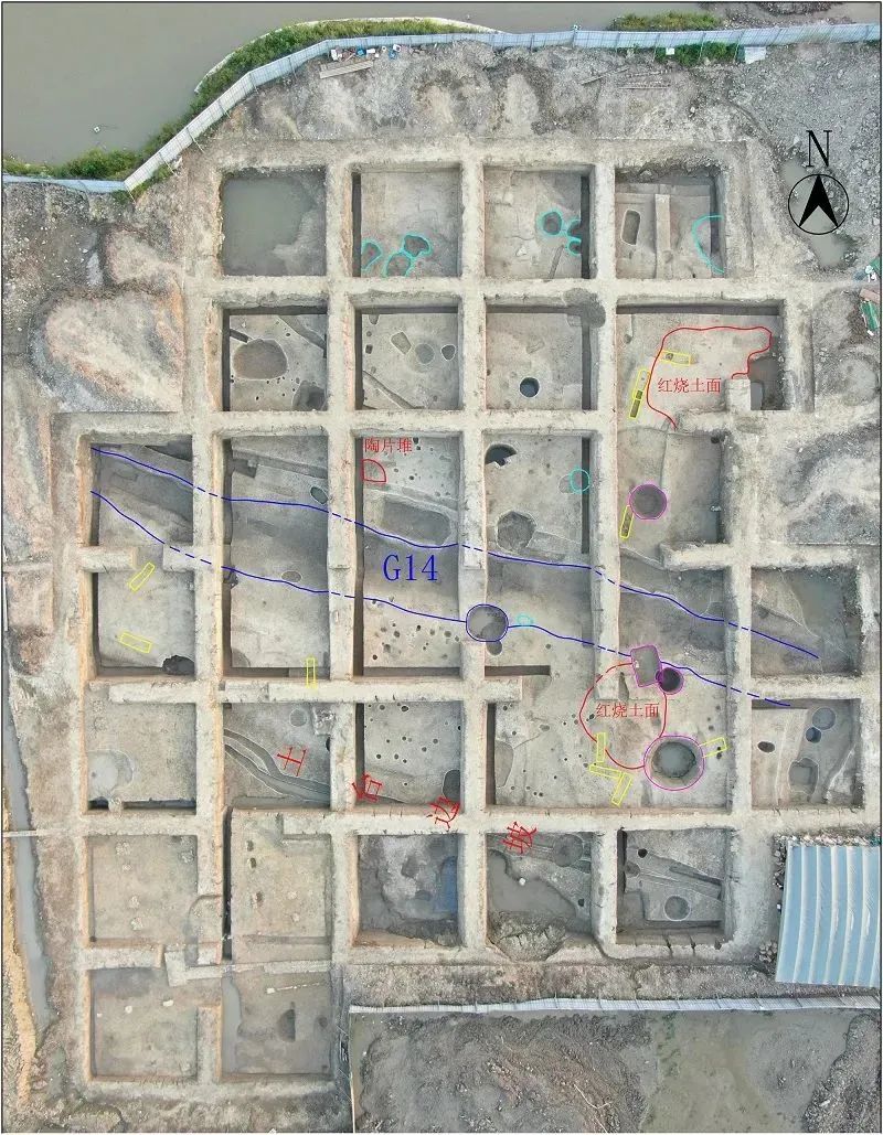 祝家桥遗址Ⅲ区良渚文化时期遗迹分布图南-北