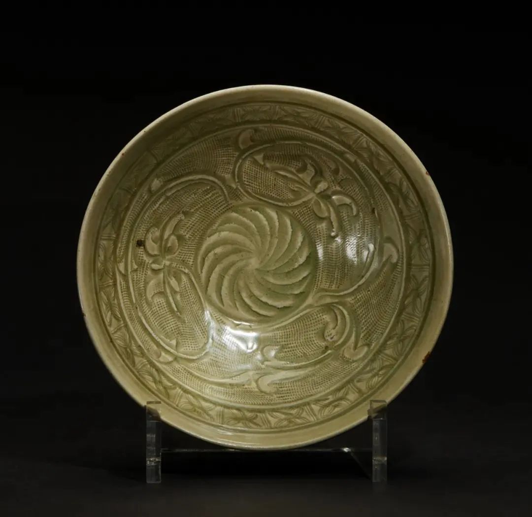 北宋晚期龙泉窑青釉篦划莲花折扇纹瓷碗