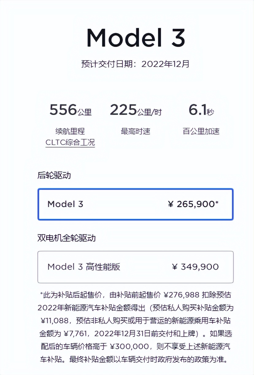 先说大家最关心的售价情况,10 月 1 日,特斯拉保险补贴上线,通过购买特斯拉相关合作机构的车 Ian,用户可获得 7000 元尾款的保险补贴减免。注意,这是自年初,受成本上涨、供应压力、通货膨胀等因素影响,特斯拉率先宣布涨价后,首次出现优惠。