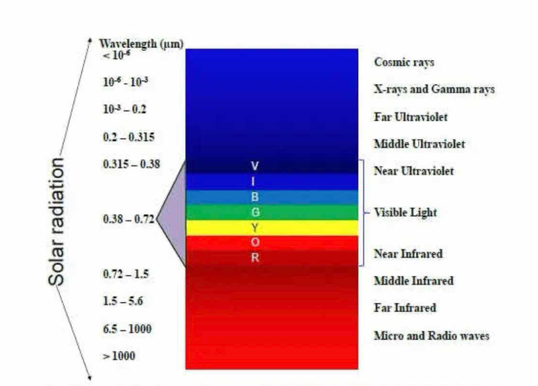 我们生活中的看到的光,即波长380nm-720nm的部分可见光。