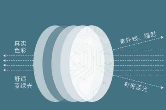 吸收蓝光就是通过在眼镜镜片材料中加入抗蓝光因子。当有害蓝光穿过镜片的时候,抗蓝光因子会吸收有害蓝光,从而实现防蓝光。