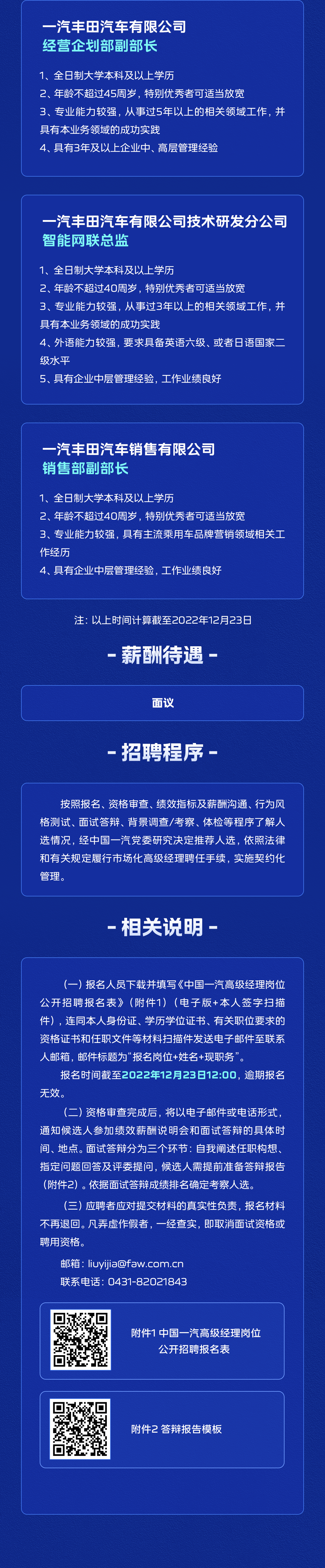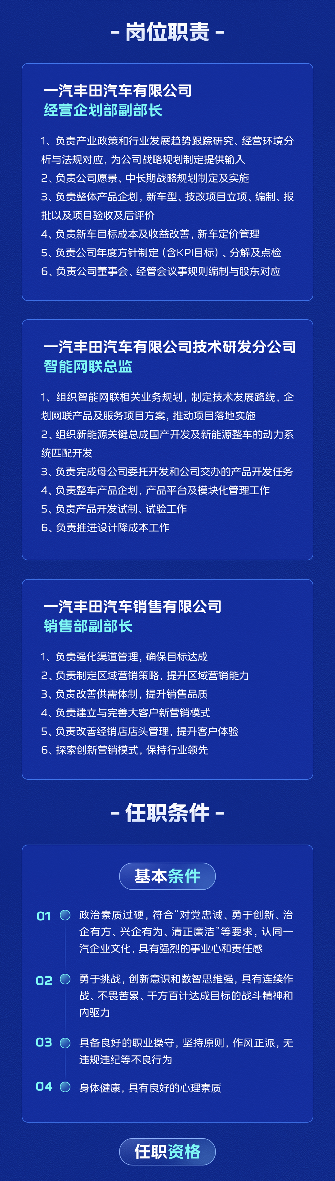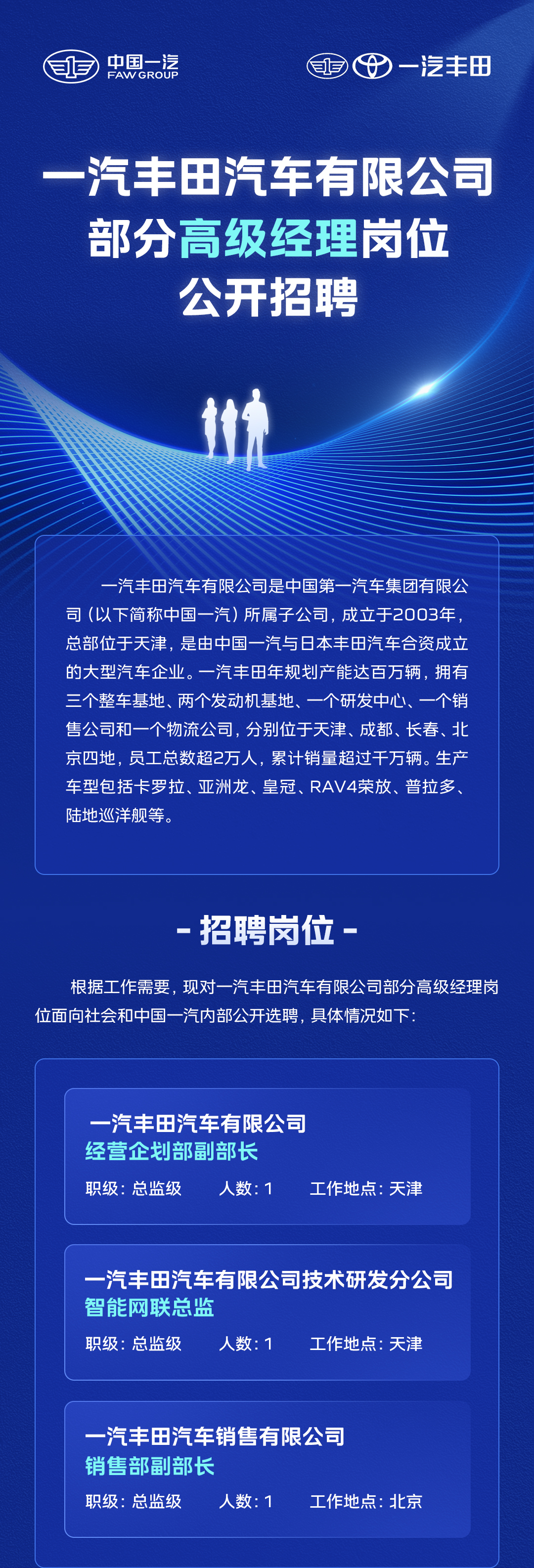 【社招】一汽丰田汽车有限公司部分高级经理岗位公开招聘