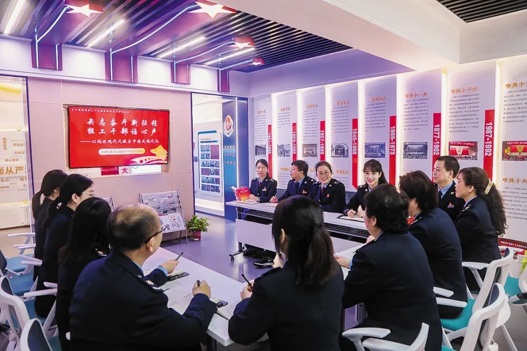 天津市税务局稽查局邀请天津市中国特色社会主义理论体系研究中心研究员,对中国式现代化的深刻内涵等内容开展专题辅导;湖南省湘潭经济技术开发区税务局联合湖南科技大学开展主题沙龙,会上该校专家从“进一步强化党对税收工作的全面领导”“进一步强化税收现代化服务于人口规模巨大的现代化”等八个方面分享了对“税收现代化服务中国式现代化”实现路径的理解思考。