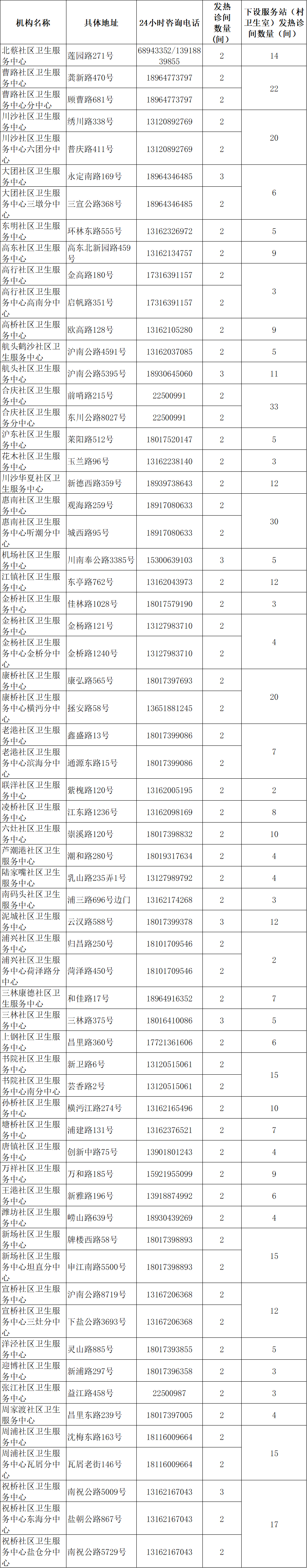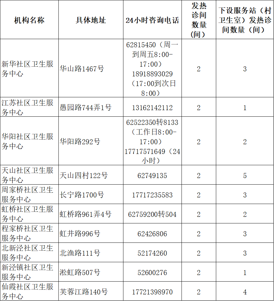 上海社区卫生服务机构发热诊疗服务全覆盖2594间发热诊间地址、电话一览市卫健委介绍,为进一步方便广大居民发热就诊需求,全市社区卫生服务机构迅速行动,扩点布局,增能提效。社区卫生服务中心、分中心发热门诊、哨点诊室全部扩容,社区卫生服务站、村卫生室全部设置“发热诊疗区域”,社区卫生服务机构发热诊疗功能全覆盖。12月19日起,全市各类社区卫生服务机构(中心、分中心、服务站、村卫生室)2594间发热诊间全部启用。