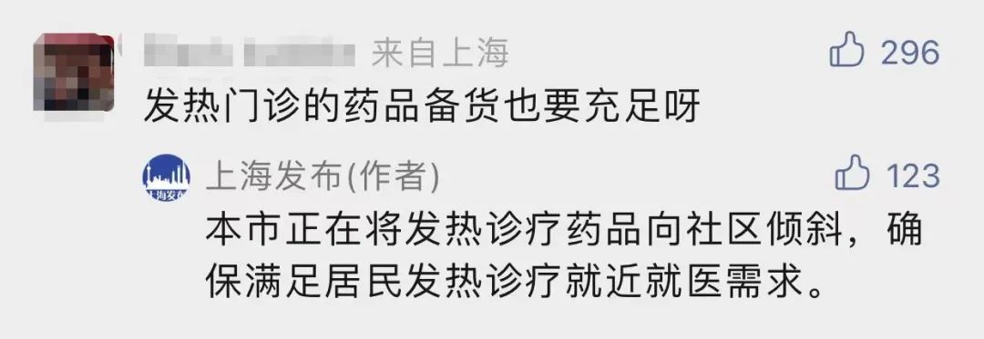 另外,上海发布还透露,本市正在将发热诊疗药品向社区倾斜,确保满足居民发热诊疗就医需求。