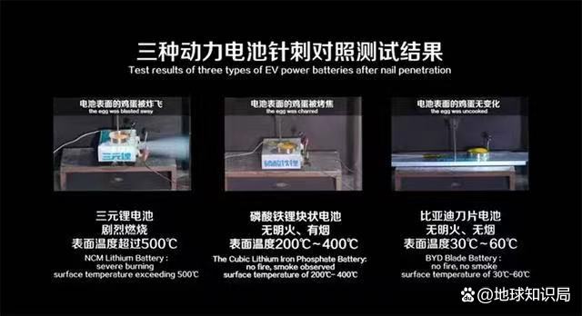 在安全性上,针刺测试是行业专家公认的针对动力电池的最难通过的安全测试,在针刺测试中,三元锂电池爆燃;普通磷酸铁锂电池无明火,有烟,表面温度400度;而刀片电池无明火,无烟,表面温度只有60度。正因为刀片电池兼顾了安全性和能量密度,引领了全球动力电池安全新高度。