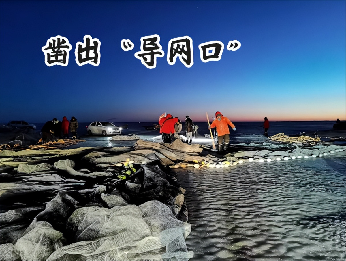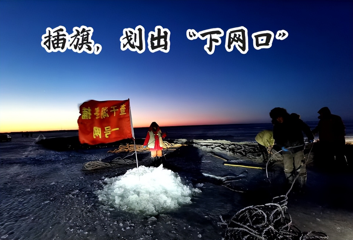 天还没亮,渔民们各司其职,火速进入工作状态,“渔把头”首先插好大旗,在冰上划出“网窝子”。负责打镩的渔民,找准方位后,就要破冰凿开一个冰眼,作为“下网口”。
