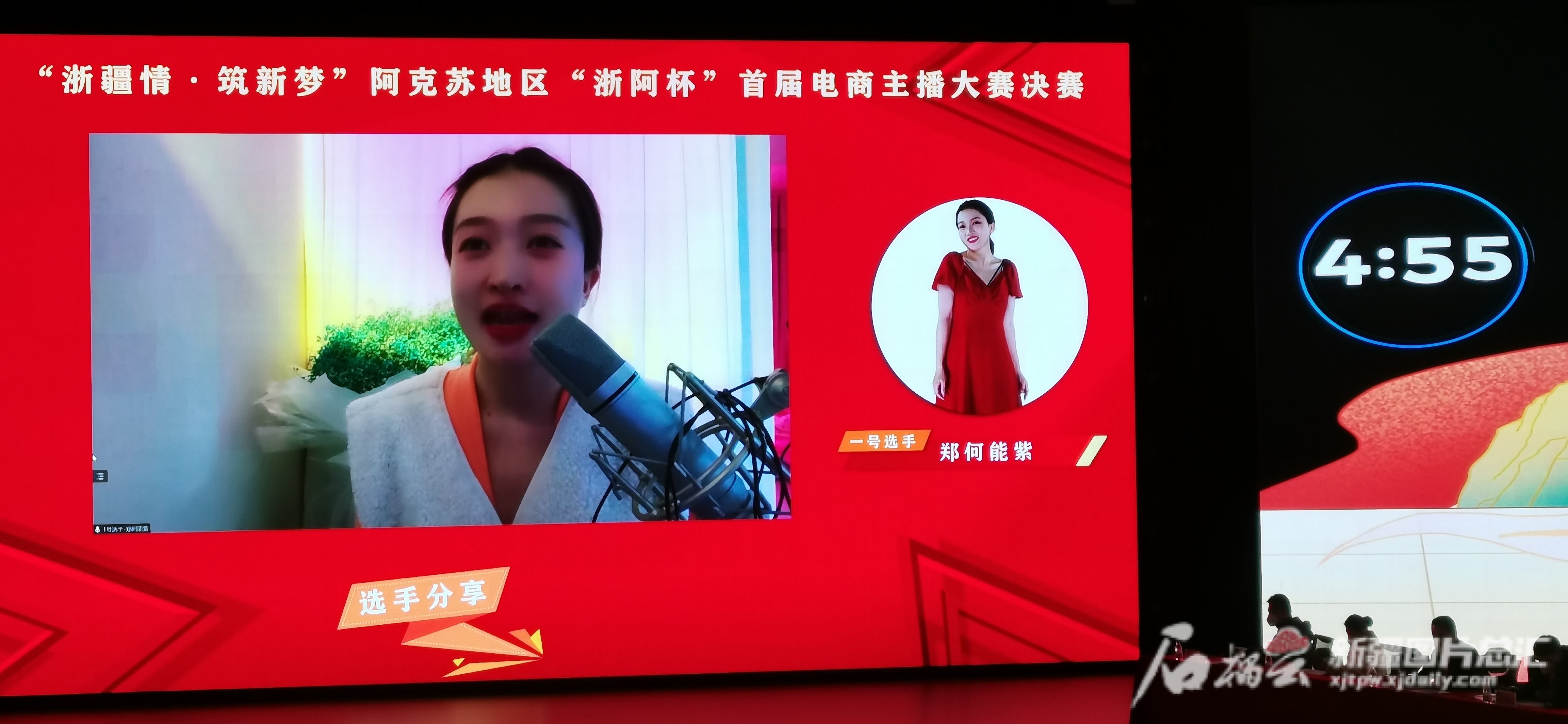 主播郑何能紫正在比赛中。石榴云/新疆日报记者刘东莱摄