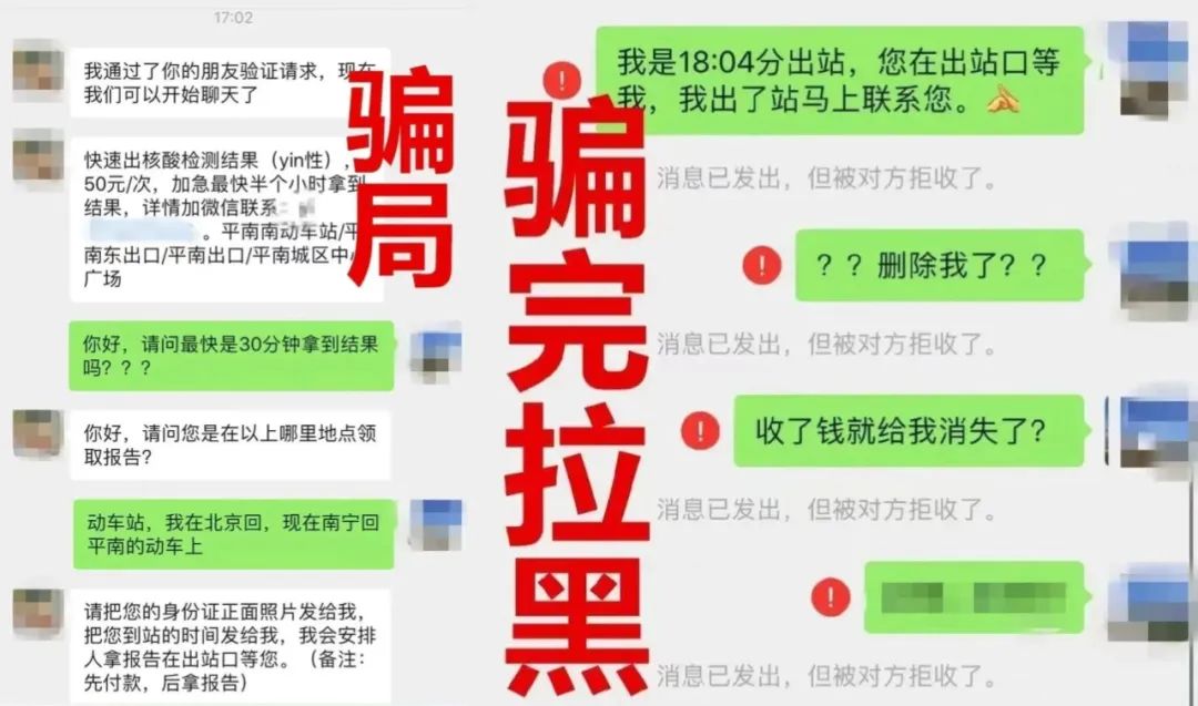 诈骗分子会假扮成社区的工作人员,在聊天群内发布“快速出核酸检测结果”“加急最快半个小时”“家里也能做核酸检测”的信息,只要额外付费便能办到,其实都是骗钱的套路。