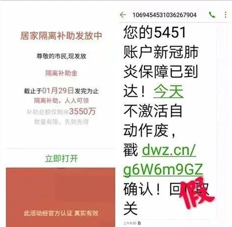 诈骗分子假冒政府部门、药物研究(医疗)机构等,以拨打电话、发送短信等方式进行推销,谎称有防疫“特效药”,诱导受害人点击含有“钓鱼网站”的链接,从而获取个人信息盗取银行余额。