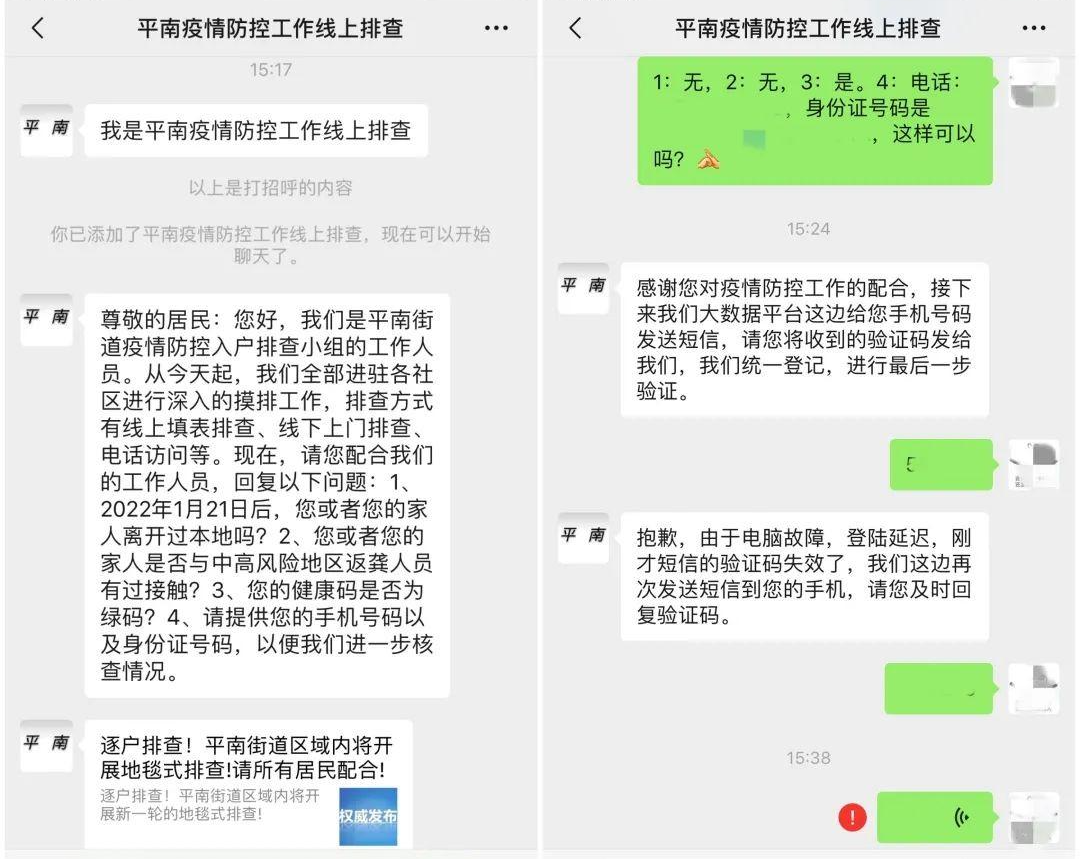 诈骗分子伪装成“疫情防控中心”或“卫健委”工作人员,谎称进行线上排查,要求受害人提供联系方式、身份证号码及验证码等相应信息,从而盗取受害者银行卡内资金。