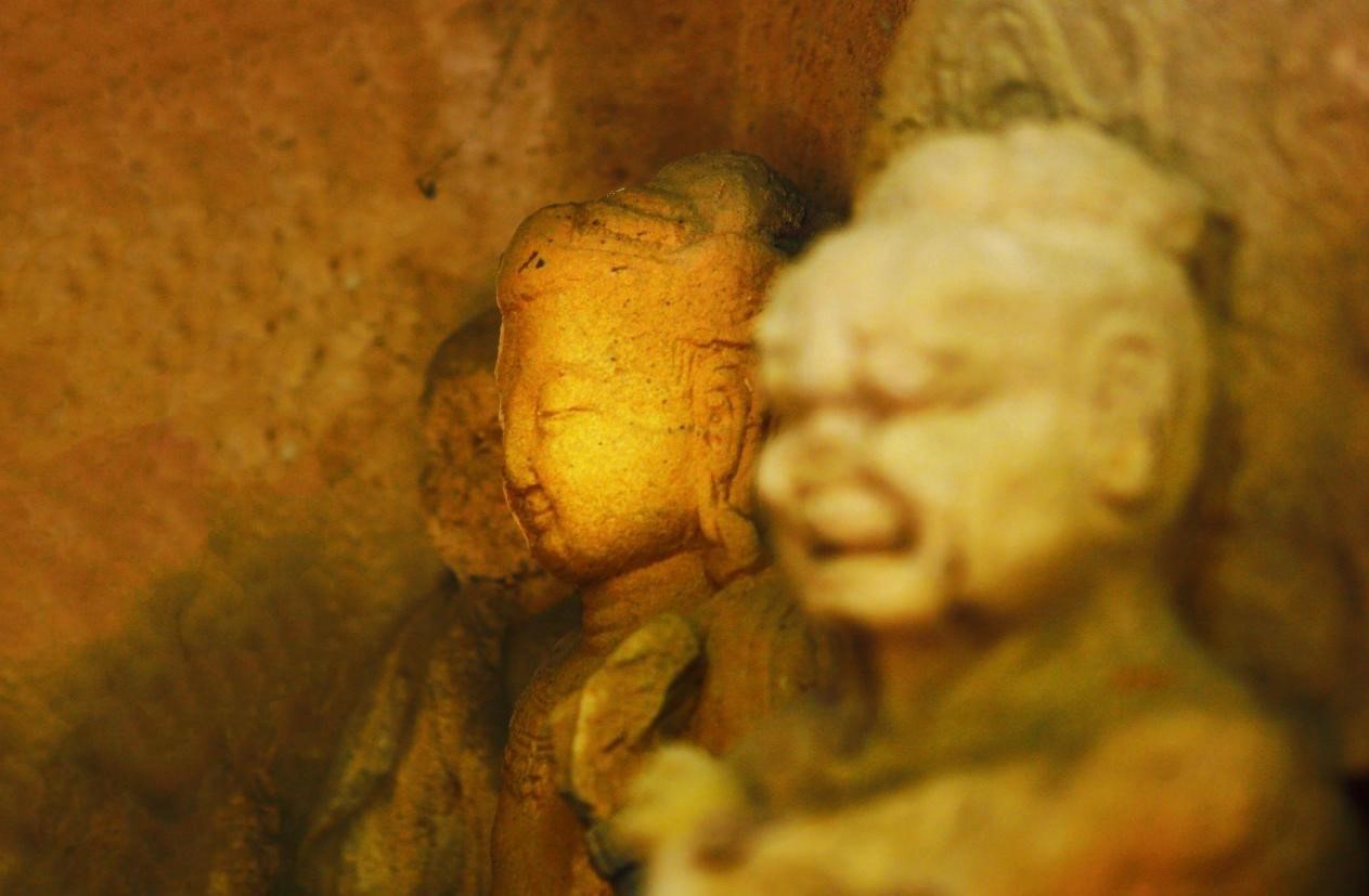 这里有鹤鸣山道教石窟,它是剑门蜀道上极其珍贵的文化遗产资源,时间跨度从唐代一直沿续到民国时期,长达1500余年。最珍贵的当数上百尊规模宏大的唐代道教造像群、晚唐诗人李商隐于唐大中八年(854年)撰《剑州重阳亭铭》碑以及宋代翻刻颜真卿书《大唐中兴颂》摩崖碑,被世人誉为“鹤鸣山三绝”。