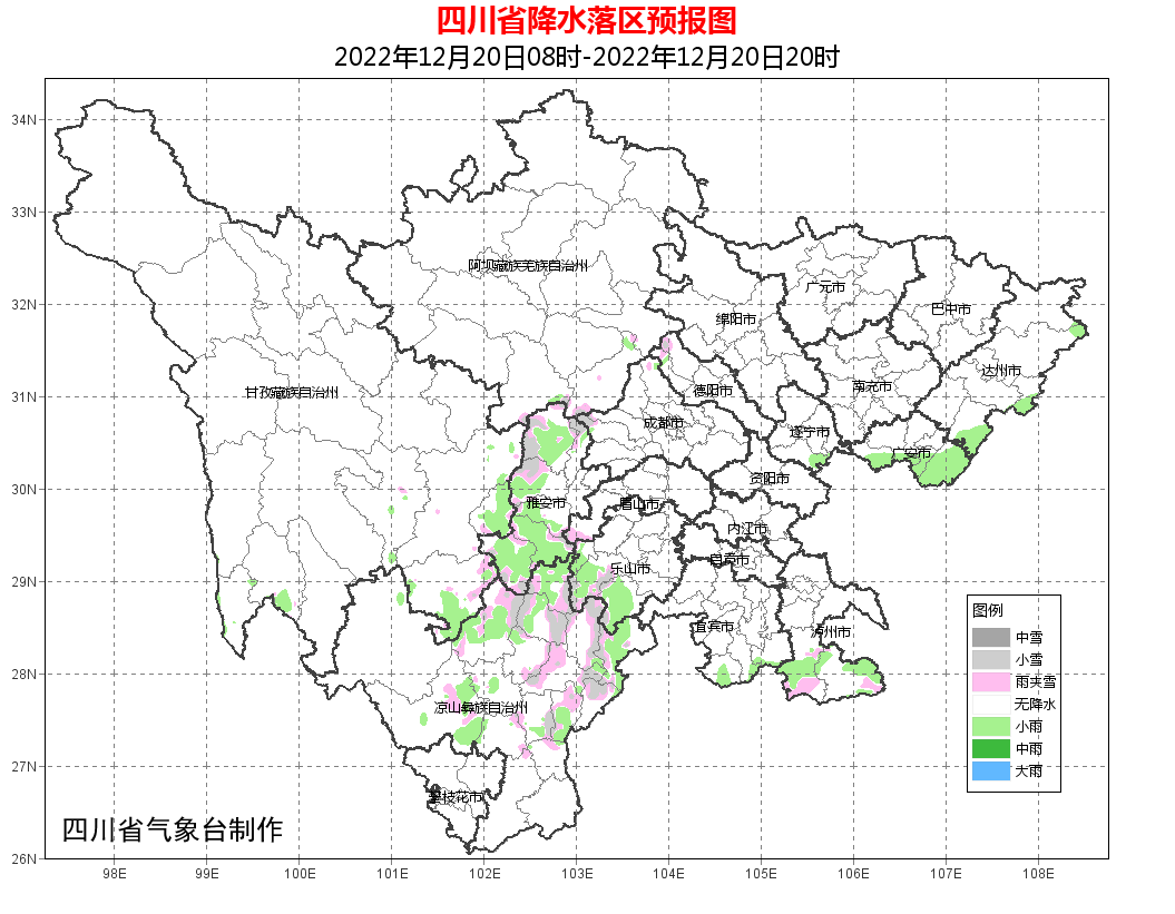 未来三天:盆地大部今天晚上阴天有小雨或零星小雨,20-21日多云间晴,其中北部中部早上有霜冻,22日阴天,中部南部有小雨;川西高原大部未来三天以多云到晴天气为主;攀西地区大部未来三天阴天有阵雨(雪)。