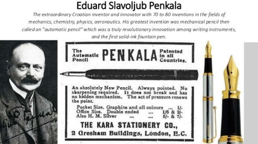 我们今天常用的钢笔,是克罗地亚人彭拉卡(SlavoljubEduard Penkala)发明的。彭拉卡持有专利70余项,还发明了暖水瓶、自动铅笔、充气床垫,极大方便了人类的日常生活。