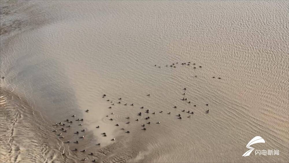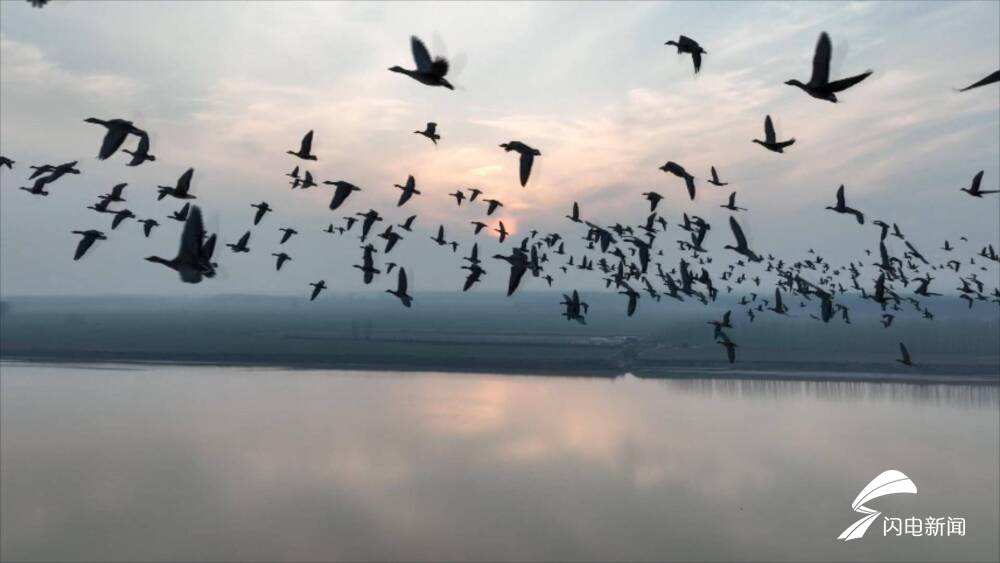 齐鲁网·闪电新闻12月19日讯 近期,包括豆雁在内的数千只候鸟飞至聊城市东阿县黄河滩区。成群结队的候鸟或在水中栖息觅食,或在空中翱翔,为初冬的黄河增添了生机和活力。