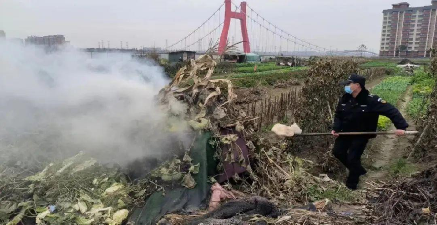 近日在钱塘区就发生了惊心一幕。我区综合行政执法局下沙中队巡逻到海通街月雅路交叉口西侧时,围墙内突然冒出的大量浓烟,吸引了正在巡查的执法队员的注意,“不好,好像有人在焚烧秸秆”。