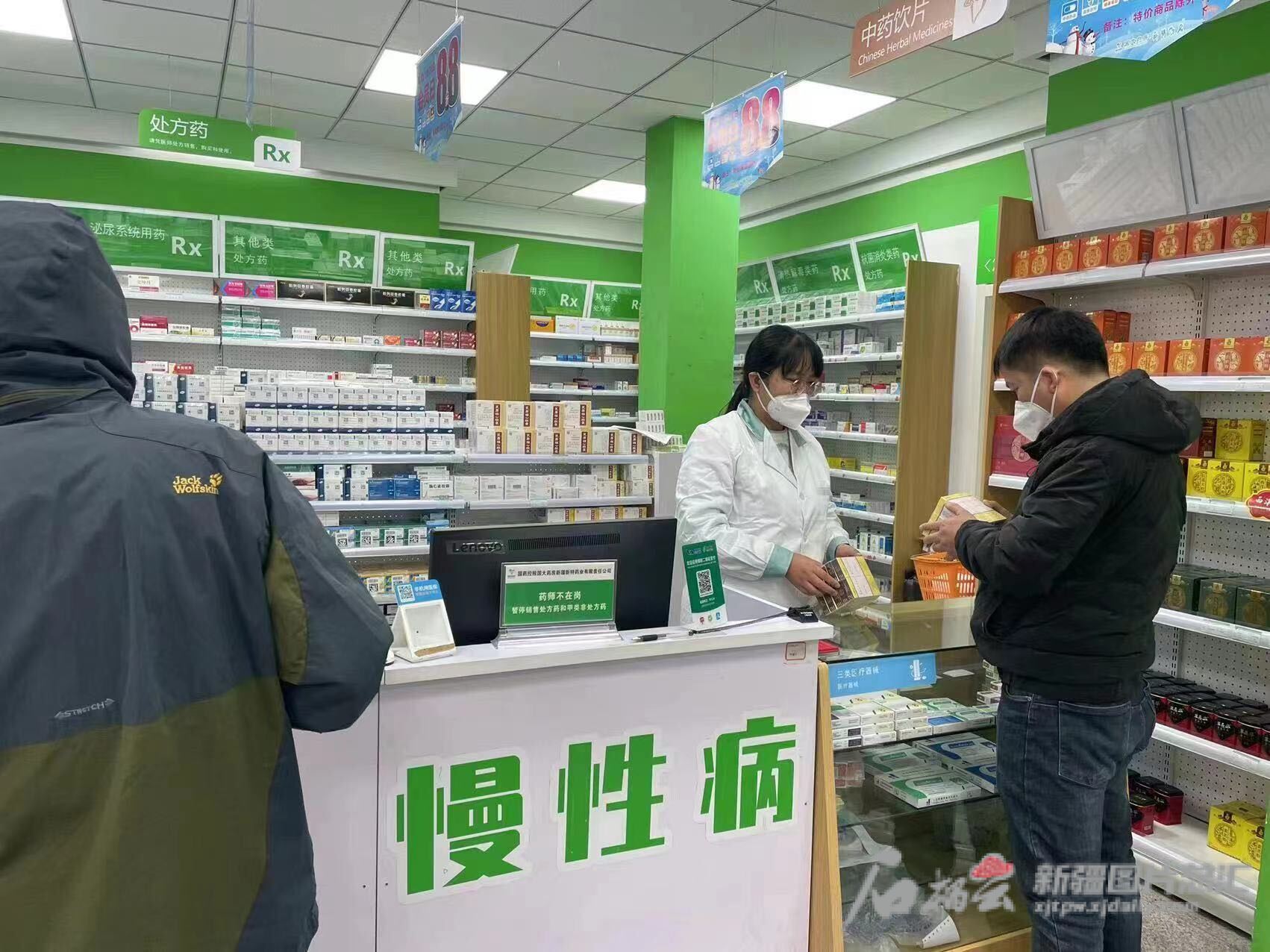 12月17日,在国药控股国大药房新疆新特药业连锁有限责任公司乌鲁木齐市新华南路二分店,市民在购买慢性病药品。 石榴云/新疆日报记者 任春香 摄