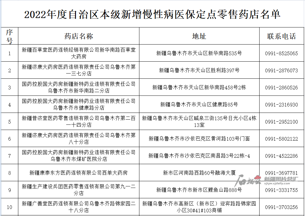 结合医保管理服务需要、慢性病定点零售药店区域分布、自治区本级慢性病患者购药需求、疫情期间服务等情况,自治区医保局对申请的慢性病医保定点零售药店进行评估,确定新增20家定点药店。截至目前,自治区本级慢性病医保定点零售药店已增至86家。
